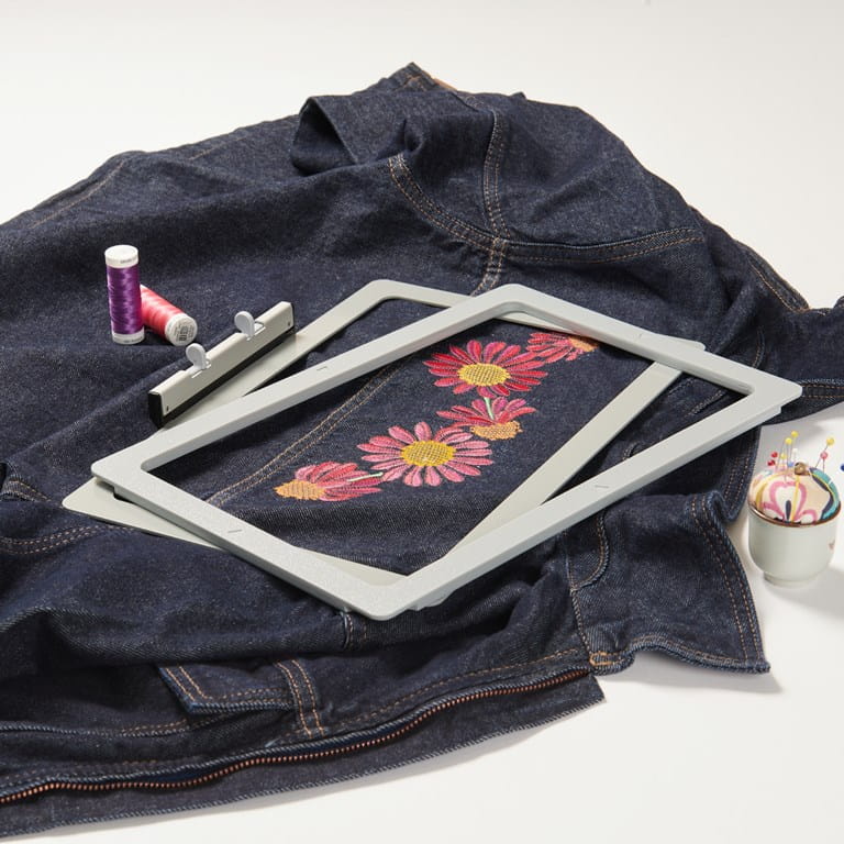 Une fois une zone brodée, le tissu peut être repositionné facilement et rapidement.